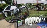 REPUBLIKA.CO.ID, JAKARTA -- Pengunjung melihat koleksi pajangan tua di acara Jakarta Vintage Market yang diselenggarakan di Taman Menteng, Jakarta Pusat, Ahad (31/5).