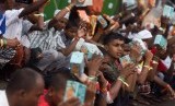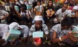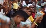 REPUBLIKA.CO.ID, BANDA ACEH -- Sejumlah pengungsi etnis Rohingya asal Myanmar antre untuk mendapatkan makanan di tempat pengungsian sementara di Beyeun, Aceh Timur, Aceh, Ahad (31/5).