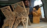 REPUBLIKA.CO.ID, JAKARTA -- Pekerja menyelesaikan tahap akhir pemembuatan rekal (meja baca Alquran) berbahan kayu di Jakarta, Senin (1/6).