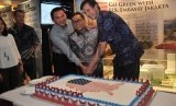 Duta Besar Amerika untuk Indonesia, Robert Blake (kanan) memotong kue secara simbolik bersama Ketua MPR RI Zulkifli Hasan (kedua kanan) dan Gubernur DKI Jakarta Basuki Tjahaja Purnama (ketiga kiri) pada perayaan kemerdekaan Amerika di Jakarta, Kamis (4/6) malam. (Republika/Rakhmawaty La'lang) (FOTO : Republika/Rakhmawaty La'lang)