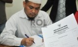 REPUBLIKA.CO.ID, JAKARTA --Sejumlah pendaftar calon Pimpinan KPK melakukan registrasi pendaftaran di kantor Kementerian Sekretariat Negara, Jakarta, Jumat (5/6).