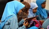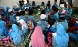 REPUBLIKA.CO.ID, JAKARTA -- Siswa tahsin Alquran anak bersiap sebelum mengikuti ujian tahsin di Sanggar Al-Qur'an Mardani Lima, Jakarta Pusat, Senin (8/6).
