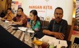 REPUBLIKA.CO.ID, JAKARTA -- Menteri Perdagangan Rachmat Gobel bersama pengamat konstitusi Irman Putra Sidin dan pemerhati pangan Khudori tampil menjadi pembicara dalam acara diskusi Pangan Kita di Jakarta, Senin (8/6).