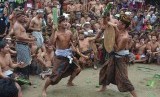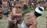 REPUBLIKA.CO.ID, KARANGASEM -- Dua orang pria saling menyerang dan menggoreskan duri daun pandan pada tradisi Mekare atau Perang Pandan di Desa Tenganan Pegringsingan, Karangasem, Bali, Senin (8/6).