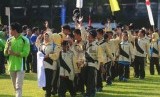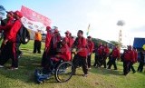 Kontingen atlet pada pembukaan Pekan Paralimpic Pelajar Nasional (PEPARPENAS) VII tahun 2015 di lapangan atletik Pajajaran, Kota Bandung, Jumat (12/6).(Septianjar Muharram) (FOTO : Septianjar Muharram)