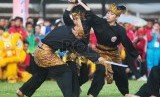 Olahraga bela diri pencak silat ditampilkan pada pembukaan Pekan Paralimpic Pelajar Nasional (PEPARPENAS) VII tahun 2015 di lapangan atletik Pajajaran, Kota Bandung, Jumat (12/6).(Septianjar Muharram) (FOTO : Septianjar Muharram)