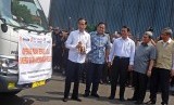 REPUBLIKA.CO.ID, CIMAHI -- Presiden Joko Widodo didampingi Menteri Perdagangan Rachmat Gobel meresmikan operasi pasar nasional di Kompleks Pergudangan Utama Bulog, Cimahi, Jawa Barat, Senin (15/6).