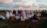 Suasana jamaah tarekat Sattariyah saat menyaksikan hilal untuk menentukan awal Ramadhan di Pantai Ulakan, Padang Pariaman, Sumatra Barat, Kamis (18/6). (Republika/Umi Nur Fadhillah)
