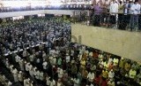REPUBLIKA.CO.ID, JAKARTA -- Sejumlah umat muslim menunaikan ibadah shalat Jumat pertama pada bulan suci Ramadhan 1436 H di Masjid At-Tin, Jakarta, Jumat (19/6).