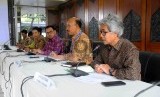 Direktur Utama PT Pertamina (Persero) Dwi Soetjipto memberikan keterangan pers terkait pengelolaan blok Mahakam di Kementerian ESDM, Jakarta, Jumat (19/6). (Republika/Agung Supriyanto)