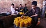 REPUBLIKA.CO.ID, HERAT -- Anak-anak menyiapkan makanan kue tradisional Jalabi di kota Herat, Afghanistan.