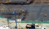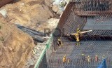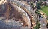 Pekerja menyelesaikan proyek pembangunan pondasi gedung bertingkat di Jakarta, Senin (22/6). (Republika/Tahta Aidilla) (FOTO : Republika/ Tahta Aidilla)