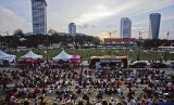 REPUBLIKA.CO.ID, KUALA LUMPUR -- Sejumlah warga berbuka puasa bersama di lapangan Merdeka, Kuala Lumpur.