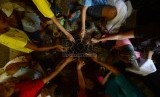 REPUBLIKA.CO.ID, Pagi itu, belasan sepeda onthel terparkir di samping rumah yang terbuat dari anyaman bambu yang berada di Desa Trusmi Kulon, Sibunder, Cirebon. Di dalamnya, terdapat tangan-tangan terampil mengoreskan tinta lilin cair dari canting, membuat lukisan pada selembar kain mori. Pada tahapan akhir produksi, kain ini dikenal dengan nama Batik Trusmi.