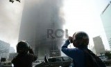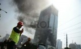Kebakaran Gedung Centenial Tower di Jalan Gatoto Subroto, Jakarta, Rabu (24/6). (Republika/Yogi Ardhi)