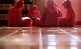 Selain warna bangunan, anak-anak yang belajar mengaji di Masjid Pink atau Masjid Dimaukom tersebut juga mengenakan seragam berwarna pink.