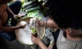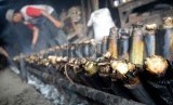 REPUBLIKA.CO.ID, JAKARTA -- Pekerja menyelesaikan pembuatan lemang bambu (makanan yang berbahan dasar beras ketan) di Kawasan Senen, Jakarta Pusat, Ahad (28/6).