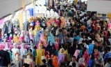 REPUBLIKA.CO.ID, JAKARTA -- Pengunjung memadati kios-kios yang menjual pakaian di Pasar Tanah Abang, Jakarta Pusat, Ahad (28/6).