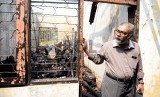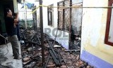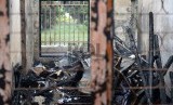 REPUBLIKA.CO.ID, JAKARTA -- Ketua Komisi Perlindungan Anak Indonesia (KPAI), Arist Merdeka Sirait meninjau puing kantor Komnas PA usai terbakar, Jakarta, Ahad (28/6).