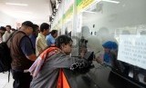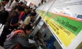 REPUBLIKA.CO.ID, JAKARTA -- Calon penumpang membeli tiket Kereta Api di Stasiun Pasar Senen, Jakarta (29/6).