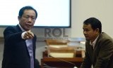 Calon Kepala Badan Intelejen Nasional, Letjen TNI Purnawirawan Sutiyoso (kiri) bersama Ketua Komisi I Mahfud Sidik di Ruang Rapat Komisi I DPR, Kompleks Parlemen, Jakarta, Selasa (30/6). (Republika/ Raisan Al Farisi) (FOTO : Republika/Raisan Al Farisi)