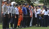 REPUBLIKA.CO.ID, JAKARTA -- Petugas dari berbagai instansi terkait berbaris mengikuti apel siaga kesiapan angkutan mudik lebaran di kantor Kemenhub, Jakarta, Kamis (2/7).