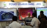 Petugas memantau situasi cuaaca saat berada di Posko Road Transport and Traffic Management (RTTMC), Jakarta, Kamis (2/7). (Republika/Tahta Aidilla) (FOTO : Republika/ Tahta Aidilla)