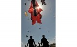 REPUBLIKA.CO.ID, DENPASAR -- Sekelompok pemuda menerbangkan layang-layang tradisional jenis ikan pada Festival ke-37 Layang-Layang Bali di Pantai Padanggalak, Denpasar, Jumat (3/7).