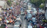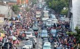Banykanya warga yang berbelanja untuk memenuhi kebutuhan jelang hari raya, menyebabkan kepadatan arus lalu lintas di kawasan Tanah Abang, Jakarta Pusat.