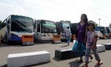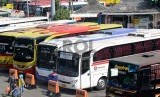 REPUBLIKA.CO.ID, JAKARTA -- Penumpang melintas di depan bus di Terminal Kampung Rambutan, Jakarta, Ahad (5/7).