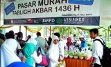 Dalam rangkaian bulan suci Ramadhan, Bank Indonesia Perwakilan Sumatera Selatan (Sumsel), Ahad (5/7) menggelar pasar murah di halaman Masjid Agung Palembang di jalan Jendral Sudirman. (Republika/Maspril Aries)