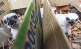 Dua ekor anak elang berada dalam gardus ditampilkan pada gelar barang bukti tindak pidana konservasi sumberdaya alam hayati dan ekosistemnya di Polda Jawa Timur, Surabaya, ]Senin (6/7).(Antara/Zabur Karuru)