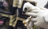 REPUBLIKA.CO.ID, SURABAYA -- Petugas menunjukan seekor anak elang ketika gelar barang bukti tindak pidana konservasi sumberdaya alam hayati dan ekosistemnya di Polda Jawa Timur, Surabaya, Jawa Timur, Senin (6/7).