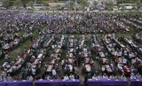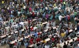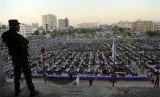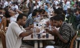 REPUBLIKA.CO.ID, GAZA -- Ribuan warga Palestina berbuka puasa bersama di sebuah lapangan terbuka di kota Gaza, Palestina.