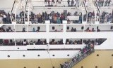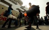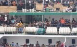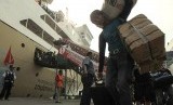 Pemudik turun dari kapal Dorolonda jurusan Balikpapan Surabaya di Jamrud Utara, Pelabuhan Tanjung Perak, Gapura Surya Nusantara Surabaya, Jawa Timur, Jumat (10/7). (Antara/Didik Suhartono)