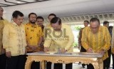 REPUBLIKA.CO.ID, JAKARTA -- Ketua Umum Golkar Munas Bali Aburizal Bakrie dan Ketua Umum Golkar Munas Ancol Agung Laksono menandatangani kesepakatan islah tahap kedua di Jakarta, Sabtu (11/7).