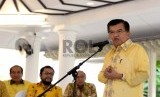 Wakil Presiden RI Jusuf Kalla memberikan paparan saat pertemuan islah di Jakarta, Sabtu (11/7). (Republika/Wihdan)
