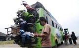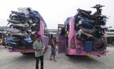 REPUBLIKA.CO.ID, PALU -- Petugas memeriksa sepeda motor yang diangkut di bagian belakang bus di Terminal Induk Mamboro, Palu, Sulawesi Tengah.
