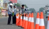 REPUBLIKA.CO.ID, CIKAMPEK -- Petugas Dinas Perhubungan Lalu Lintas dan Angkutan Jalan Raya (Dishub LLAJ) memasang marka pembatas jalan di jalur mudik Cikampek, Jawa Barat, Ahad (12/7).