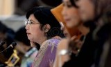 Ketua Pansel KPK Destry Damayanti (tengah) menghadiri konferensi pers di Gedung Setneg, Jakarta, Selasa (14/7). (Republika/Wiihdan Hidayat)