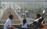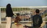 REPUBLIKA.CO.ID, INDRAMAYU -- Warga ngabuburit untuk menunggu berbuka puasa di Jembatang Penyeberangan Kawasan Mekarwaru, Indramayu, Jawa Barat, Selasa (14/7).