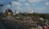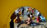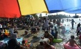 REPUBLIKA.CO.ID, JAKARTA -- Pengunjung memadati pantai Festival Ancol, Jakarta Utara, Senin (18/7). Pada H+1 Lebaran, sejumlah tempat wisata yang di Jakarta diserbu warga untuk mengisi liburan Lebaran.