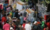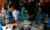 REPUBLIKA.CO.ID,n JAKARTA -- Pembeli memilih mainan untuk anaknya ketika berbelanja di Pasar Gembrong, Jakarta, Ahad (19/7).