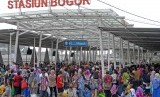 REPUBLIKA.CO.ID, JAKARTA --Calon penumpang kereta api Commuter Line antre masuk stasiun Besar Bogor, di Kota Bogor, Jabar, Ahad (19/7).