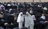 REPUBLIKA.CO.ID, GAZA -- Suasana warga Palestina saat melaksanakan Shalat Ied dan merayakan Hari Raya Idul Fitri di Gaza, Palestina, Jumat (17/7).