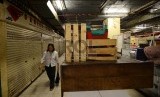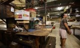 REPUBLIKA.CO.ID, JAKARTA -- Suasana sepi kios yang masih ditinggal para pedagangnya di Pasar Atom, Jakarta Pusat, Senin (20/7).