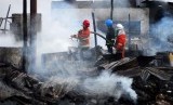 REPUBLIKA.CO.ID, BANDUNG -- Petugas pemadam kebakaran mencoba memadamkan api yang membakar pasar Gedebage, Kota Bandung, Senin (20/7).