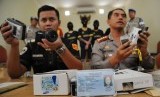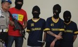 REPUBLIKA.CO.ID, DEPOK -- Petugas kepolisian memperlihatkan tersangka pelaku perampokan dan pembunuh wartawati Nurbaety Rofiq kepada wartawan saat rilis penangkapan di Mapolresta Depok, Jawa Barat, Senin (20/7).
