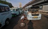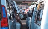 REPUBLIKA.CO.ID, JAKARTA -- Pengemudi menunggu penumpang di Terminal Kampung Melayu, Jakarta Timur, Selasa (21/7).