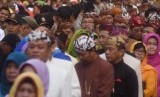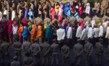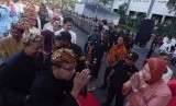 REPUBLIKA.CO.ID, SURABAYA -- Sejumlah pegawai antre untuk bersalaman dengan Walikota Surabaya Tri Rismaharini ketika halal bihalal di Balaikota Surabaya, Jawa Timur, Rabu (22/7).